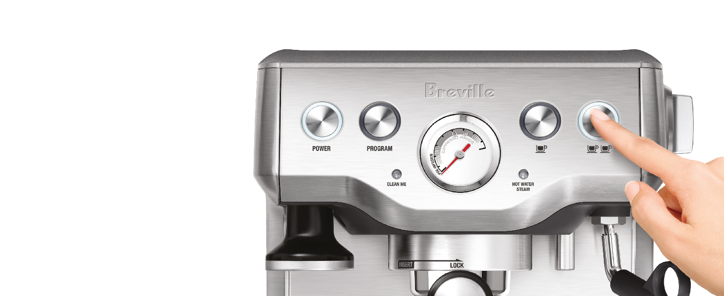 ( Control the volume of each pour at the touch of a button and choose 1 shot, 2 shot or manually control over how much espresso ends up in your cup